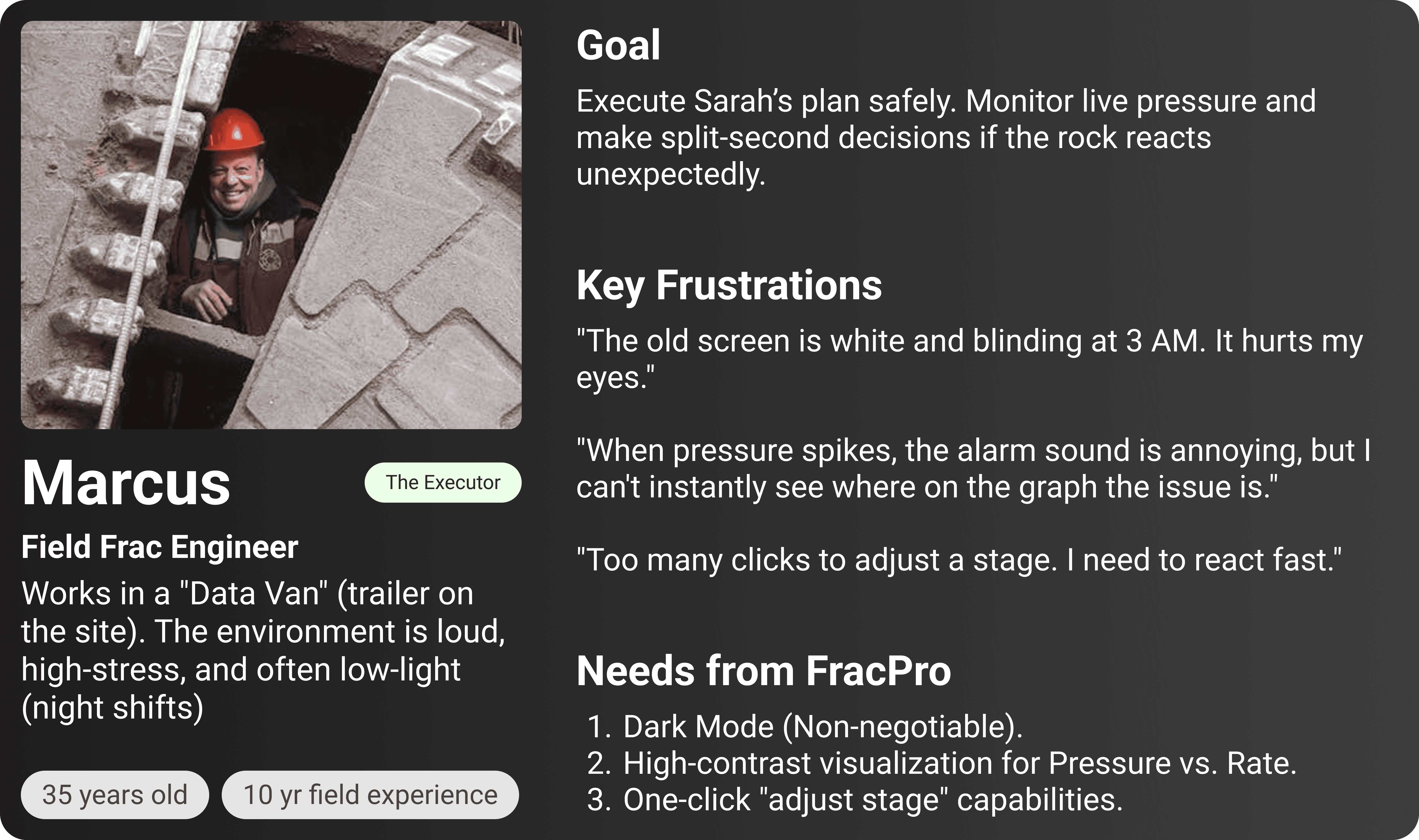 "Dark mode is non-negotiable. We work in trailers with low light; white screens hurt our eyes."