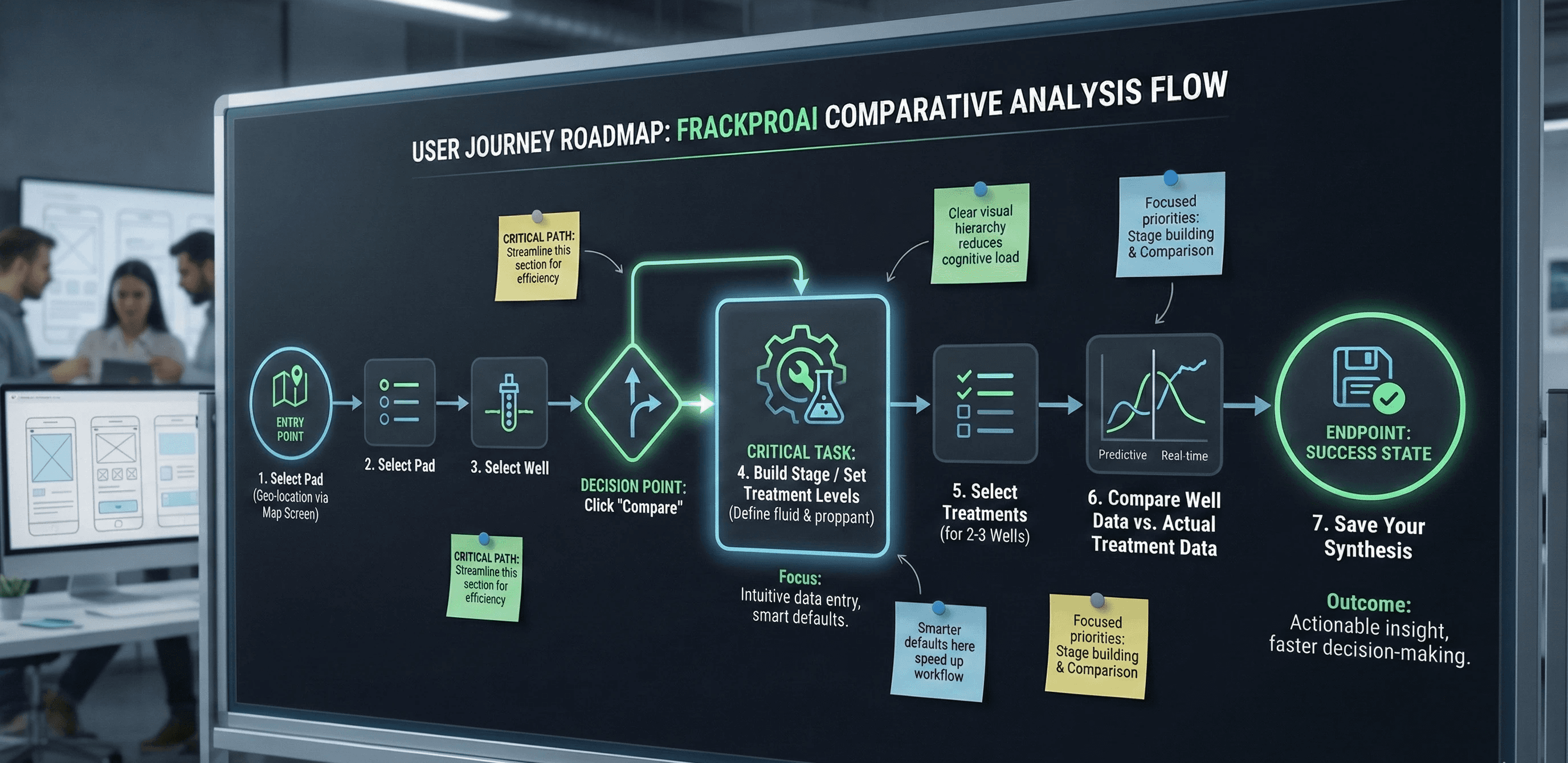 The redesign wasn't just a facelift; it was an opportunity to introduce Predictive UX. Instead of just showing data, the system could suggest the optimal pumping rate or warn if a stage was likely to "screen out" (clog) based on historical data from similar wells.